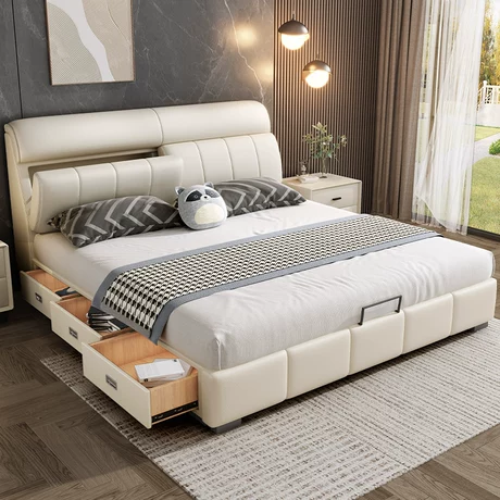 真皮床现代简约轻奢主卧室大床双人床软包床多功能储物皮艺床婚床